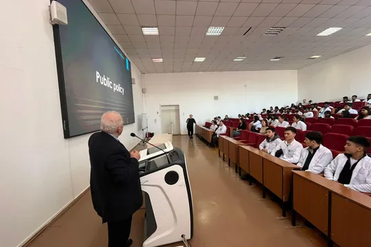2024 жылғы 24 қараша мен 8 желтоқсан аралығында "Visiting professor" бағдарламасы бойынша ректордың кеңесшісі, Оңтүстік Лациодағы Кассино Университетінің (Италия) профессоры Алессандро Фигус мырза тарих, география және әлеуметтік-гуманитарлық пәндер кафедрасы, бизнес және қызметтер кафедрасы, әлеуметтік және жас ерекшелігі педагогикасы кафедрасы, педагогика және психология кафедраларының ПОҚ пен бакалаврлары, магистранттарына және медицина жоғары мектебінің резиденттеріне сабақтар өткізеді.