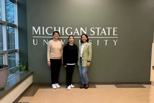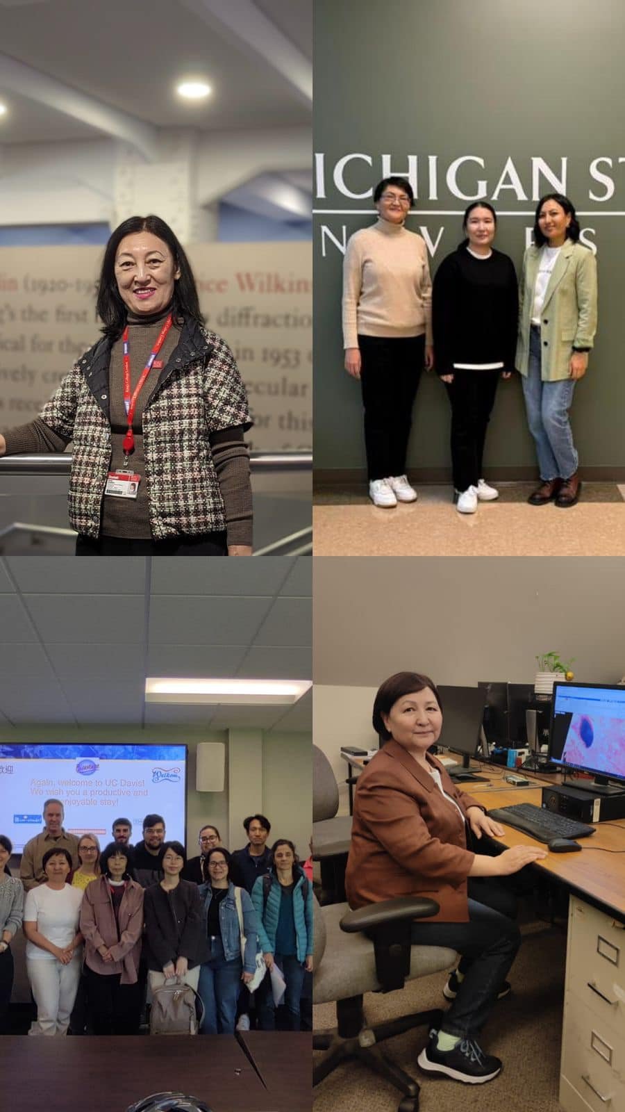 Тағы үш оқытушы - Дана Нұрланқызы Қалжанова ("Жалпы тіл білімі" кафедрасының оқытушысы), Диана Үсербайқызы Бекенова ("Педагогика және психология" кафедрасының оқытушысы) және Катира Амантайқызы Қалжанова ("Бизнес және қызметтер" кафедрасының оқытушысы) Мичиган мемлекеттік университетінде "Университет оқытушыларына арналған педагогикалық инновациялар" бағдарламасы бойынша тағылымдамаға қатысады. Бағдарламаның басында олар мұғалімдер колледжінде бірқатар семинарларға қатысты, онда олар АҚШ-тың жоғары білім беру жүйесін және ересектерді оқыту теориясы мен мотивация психологиясы сияқты тұжырымдамаларды зерттеді.