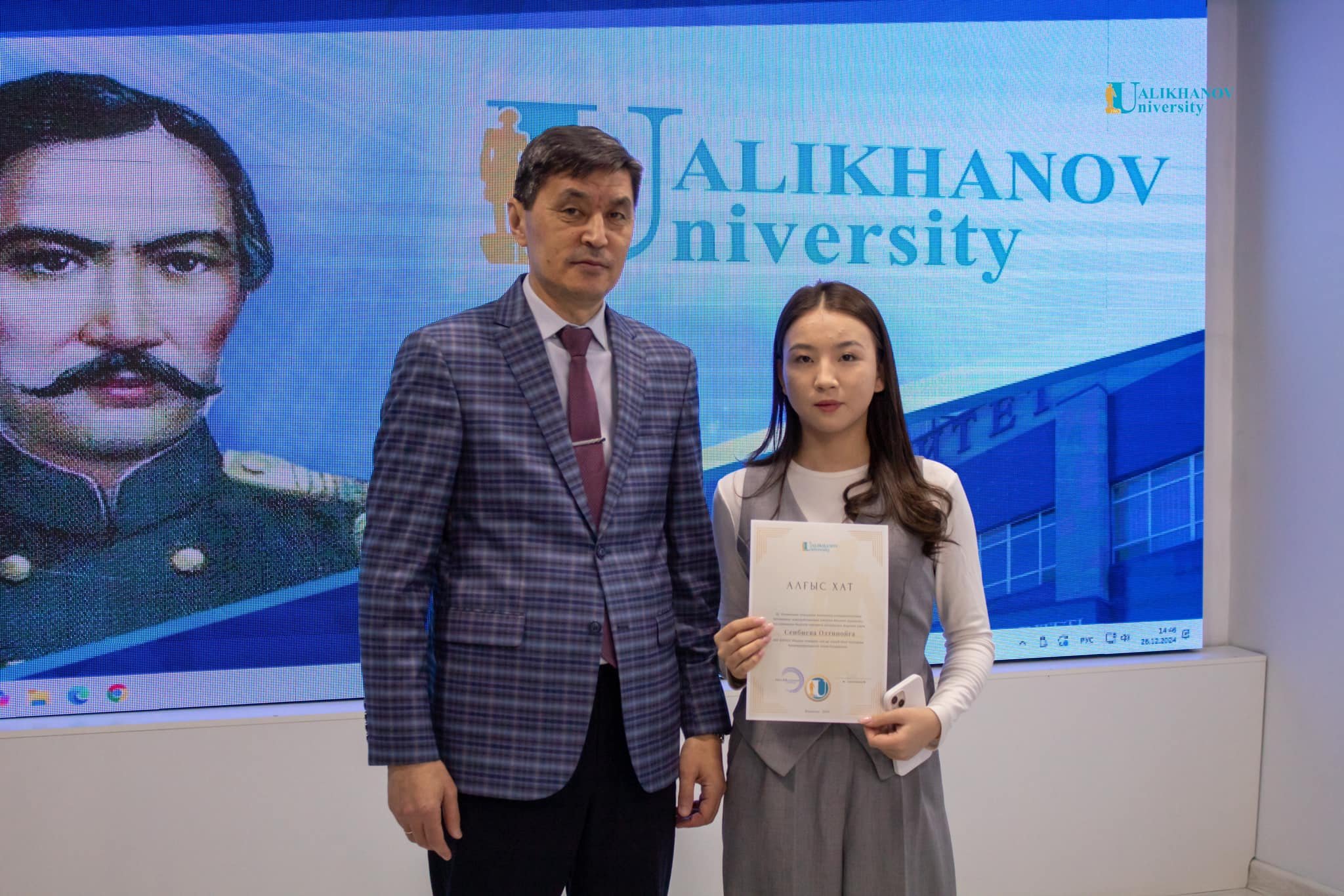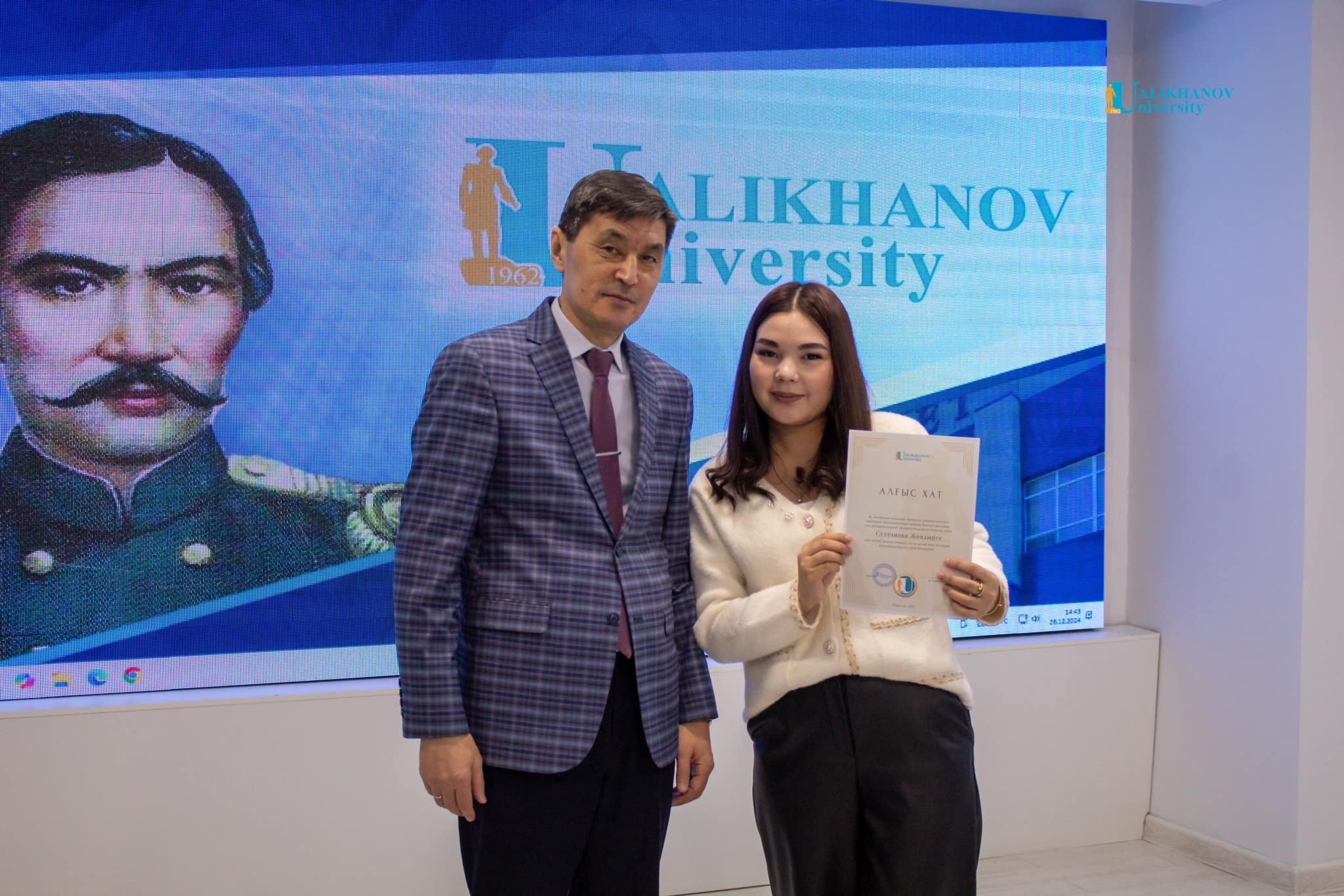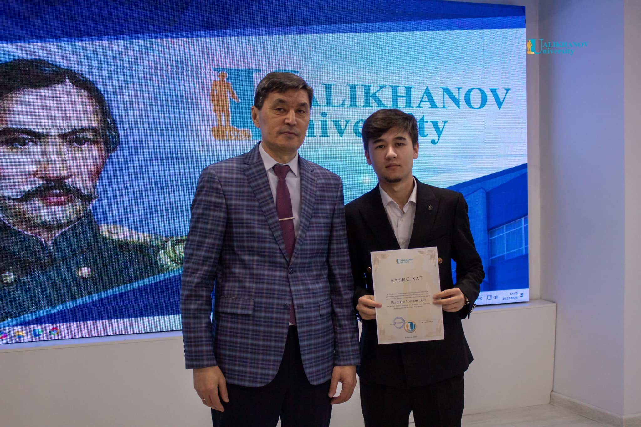 Проректор Қапышев А.К әр студенттің университеттің дамуына қосқан үлесі маңызды екенін атап өтіп, ректор атынан алғыс хаттар табыс етті.