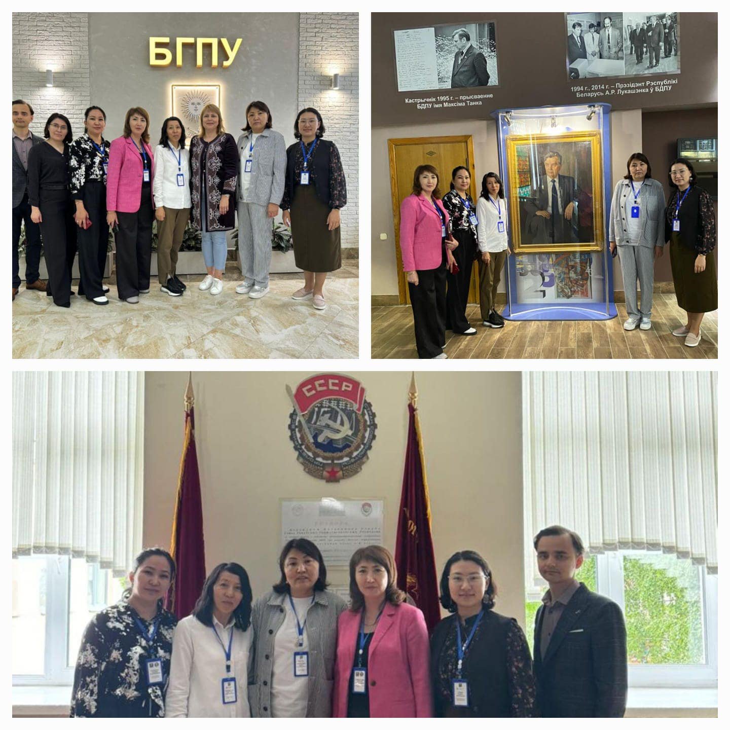 2024 жылғы 20-28 мамыр аралығында № AP14972630 «Қазақстанның жаңа кәсіптер мен құзыреттіліктер Атласы контексінде ерте бейіндеу кезінде мектеп оқушыларына көптілді білім берудің рөлі» ғылыми жобасы шеңберінде PhD докторы, қауымдастырылған профессор С.К.Молдабекова және педагогика ғылымдарының магистрі, педагогика және психология кафедрасы лекторының ассистенті Н.М.Нүркен Максим Танк атындағы Беларусь мемлекеттік педагогикалық университетіне ректор А.И.Жук бастаған, Бiлiктiлiктi арттыру және қайта даярлау институты И.В.Шеститко атынан, Минск қаласы Беларусь Республикасы, Беларусь-Қазақстан мәдени-бiлiм беру орталығы М.Ч.Гардукевич атынан шақырылды.Беларусь Республикасы Минск қ. БМПУ және ҚДБАИ сапарының мақсаты - БМПУ-дің үздіксіз мамандандырылған даярлау жүйесі ретінде ерте бейіндеуді ұйымдастыру туралы тәжірибесін зерделеу, оқу орындарының тәжірибесімен алмасу, білім берудің академиялық және қолданбалы аспектілері саласындағы одан әрі ынтымақтастық.