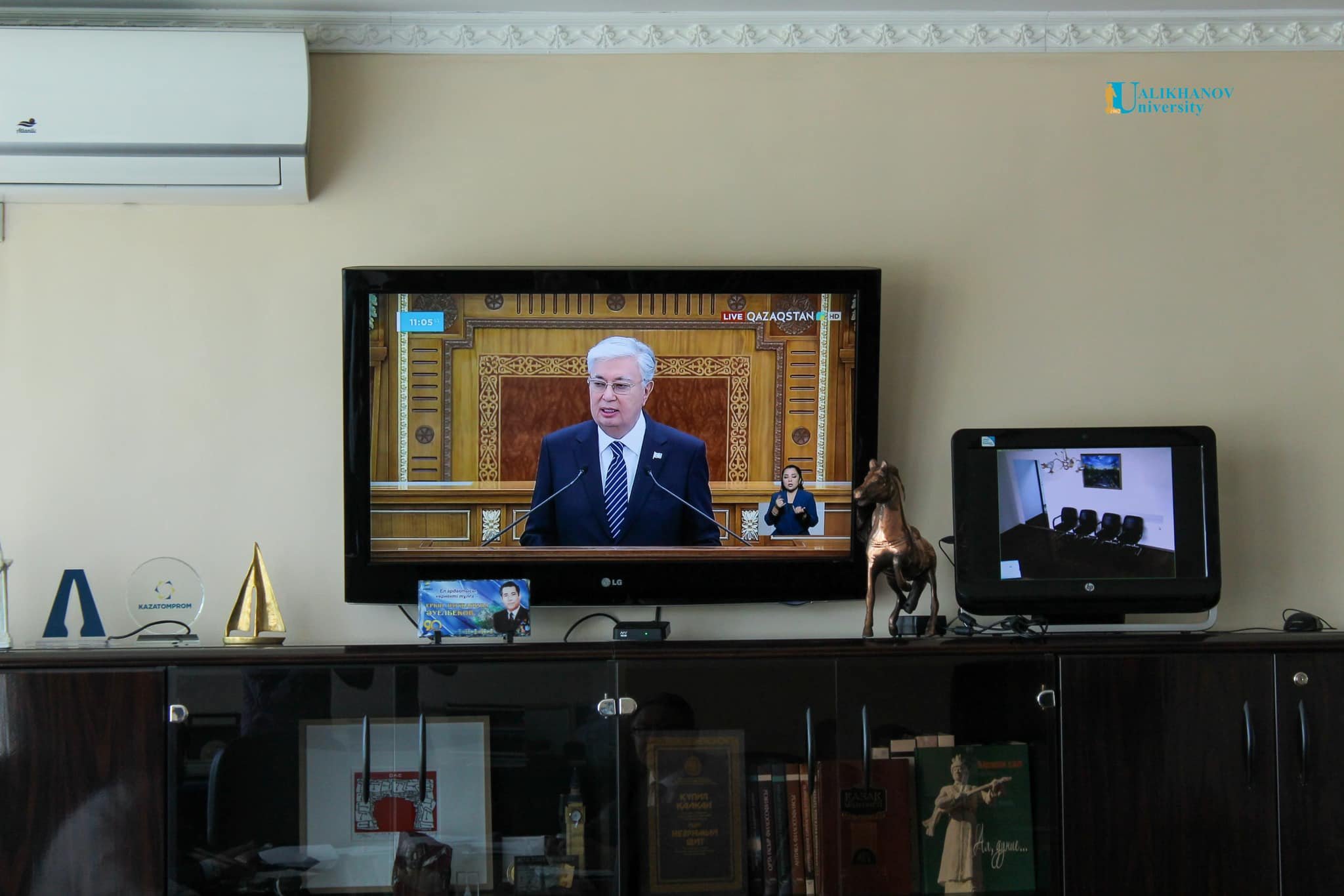 Бүгін Қазақстан Республикасының Президенті Қ.К. Тоқаевтың Қазақстан халқына жыл сайынғы жолдауы өтті.Ш. Уәлиханов атындағы Көкшетау университетінің қызметкерлері жарияланған бастамалар мен алдағы жоспарларды мұқият қадағалап, тікелей эфирді қызығушылықпен тыңдады. Жолдау барысында Мемлекет басшысы шетелдік жоғары оқу орындарымен ынтымақтастықты күшейтіп, тәжірибе алмасу қажеттігін атап өтті. Мұндай қадамдар білім сапасын арттыруға, озық зерттеулер мен инновациялармен алмасуды жақсартуға және халықаралық сұранысқа ие жоғары білікті мамандарды дайындауға мүмкіндік береді.