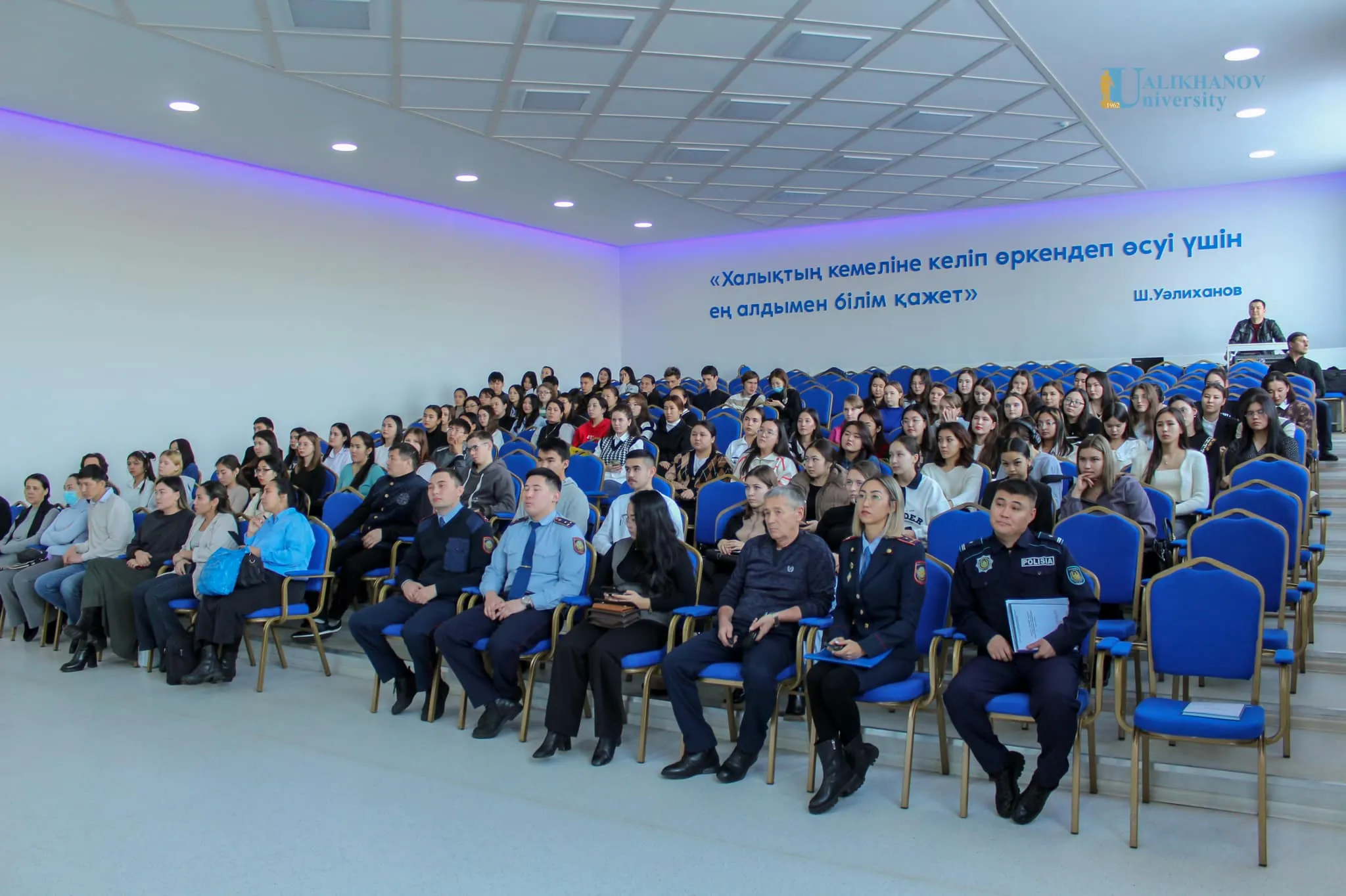 Бүгін Ualikhanov University-ті Қазақстан Республикасы Ішкі Істер Министрлігінің Ақмола облысы полиция департаментінің қызметкерлерін қарсы алды. Олардың қатарында Көкшетау қ. ПБ МӨҚҚ МЖӘ инспекторы, полиция лейтенанты Э.А.Трайбер, Көкшетау қ. ПБ МӨҚҚ учаскелік инспекторлары бөлімшесінің бастығы, полиция майоры С. М. Саденов, полицияның қоғамдық көмекшісі В. Р. Зиганшин және ПД МӨҚҚ әйелдерді зорлық-зомбылықтан қорғау жөніндегі аға инспектор, полиция капитаны А. Б. Дауенова бар.