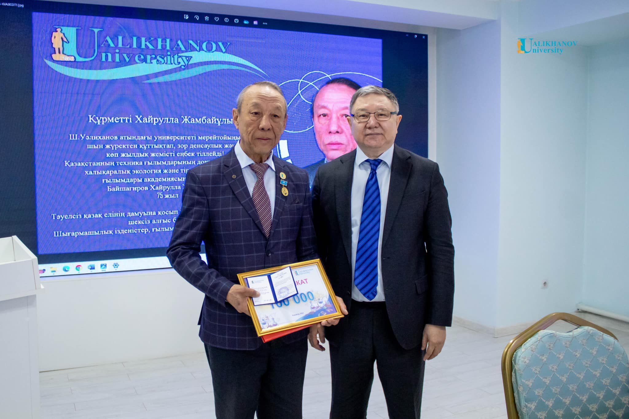 Бүгін белгілі ғалым, профессор, ҚР Ұлттық Инженерлік академиясының академигі, академик Жолдасбеков атындағы медаль, "Қазақстан ғылымының дамуына қосқан үлесі үшін" төсбелгісінің, ҚР Білім және ғылым министрлігі Мемлекеттік гранттарының және "Жоғары оқу орнының үздік оқытушысы" атағының иегері Қайролла Жамбайұлы Байшағиров 75 жылдығына орай Ualikhanov University "Айрықша еңбегі үшін" төсбелгісімен және ректордың Алғыс хатымен марапатталды. Біздің ғалым-өнертапқыштың жасыл энергетика саласындағы жаңа зерттеулері, қызықты жобалары мен өнертабыстары жарты ғасырға жуық уақыт бойы отандық ғылымның дамуына өз үлесін қосып, ғалымдардың Қазақстанда ғана емес, одан тыс жерлерде де кең қызығушылығын тудырды.