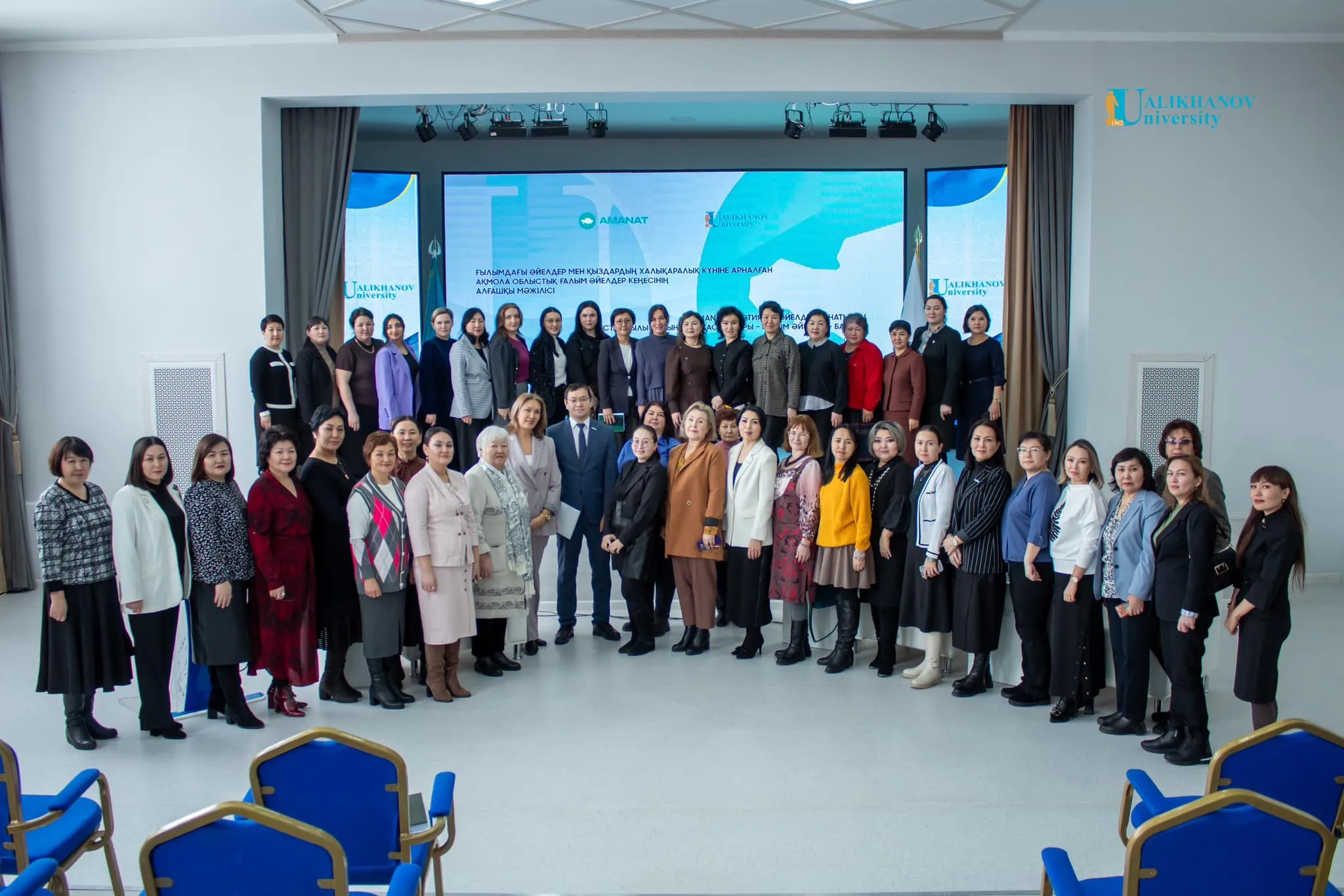 Бүгін Ualikhanov University-де Ғылымдағы әйелдер мен қыздардың халықаралық күніне арналған Ақмола облысының «Ғылымдағы әйелдер» бағыты бойынша «AMANAT» партиясы әйелдер қанатының алғашқы отырысы өтті.Іс-шараның модераторы Ш.Уәлиханов атындағы Көкшетау университетінің ғылыми жұмыс және өңірмен өзара іс-қимыл жөніндегі проректоры, филология ғылымдарының докторы, профессор Айгүл Досжанқызы Жакупова болды. Қонақтардың қатарында «Аманат» партиясы Ақмола облыстық филиалының жауапты хатшысы Берген Маратұлы Беспалинов, Қазақстан Республикасы Парламенті Мәжілісінің депутаты Ким Вера Александровна және «Аманат» партиясы жанындағы Республикалық әйелдер қанатының басшысы, сондай-ақ «Аманат» партиясы Ақмола облыстық филиалының әйелдер қанатының басшысы және облыстық мәслихат депутаты Балташева Айнагүл Қыдырбайқызы болды.