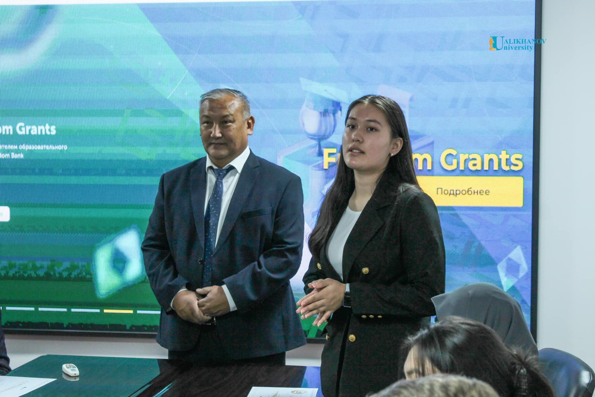 Бүгін Ualikhanov University-де Freedom Bank гранттарының табыстау салтанатты тұсаукесері өтті. Биыл дарынды және ынталы студенттерді қолдау мақсатында банк 40 грантты тегін бөлді.Сайысқа кемінде 75 ұпай жинаған балалар қатысты. Грант сертификаттарын «Фридом Банк Қазақстан» АҚ Көкшетау қаласындағы филиалының директоры Торғауытов Асхат Таласұлы табыс етті. Біз студенттерімізді мақтан тұтамыз және Freedom Bank-ке қолдауы мен білім беруді дамытуға қосқан үлесі үшін алғыс айтамыз!