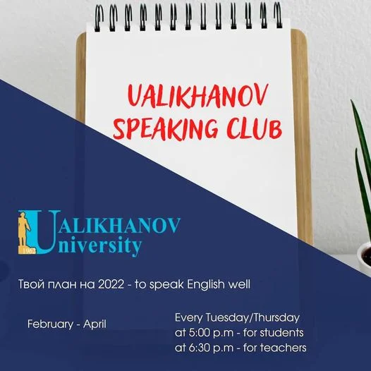 SPEAKING CLUB с носителем английского языка для студентов и преподавателей в UALIKHANOV UNIVERSITY стартует с февраля месяца!