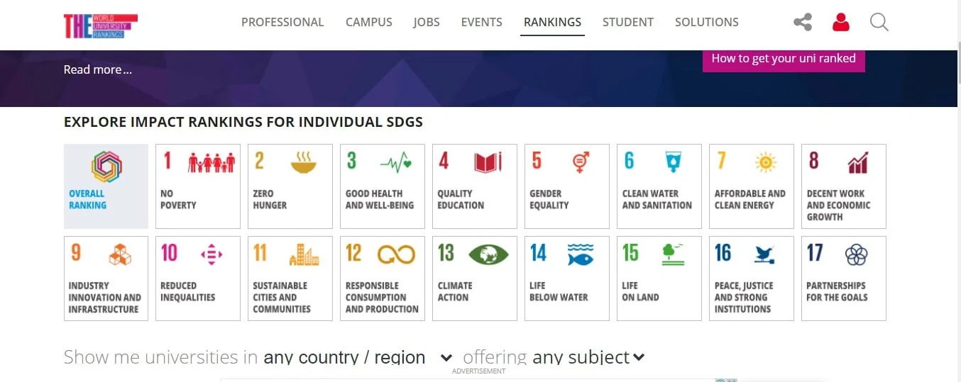 THE Impact Ranking – это рейтинг, публикуемый авторитетным британским рейтинговым агентством Times Higher Education и оценивающий университеты с точки зрения вовлеченности в процесс достижения глобальных Целей устойчивого развития, утвержденных Генеральной Ассамблеей ООН.