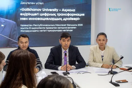«Ualikhanov University - Ақмола облысындағы цифрлық трансформация мен инновациялардың драйвері» тақырыбындағы дөңгелек үстел Қазақстан Республикасы Президентінің 2025 жылғы 8 қыркүйектегі Қазақстан халқына Жолдауында айтылған негізгі тезистерге арналды.