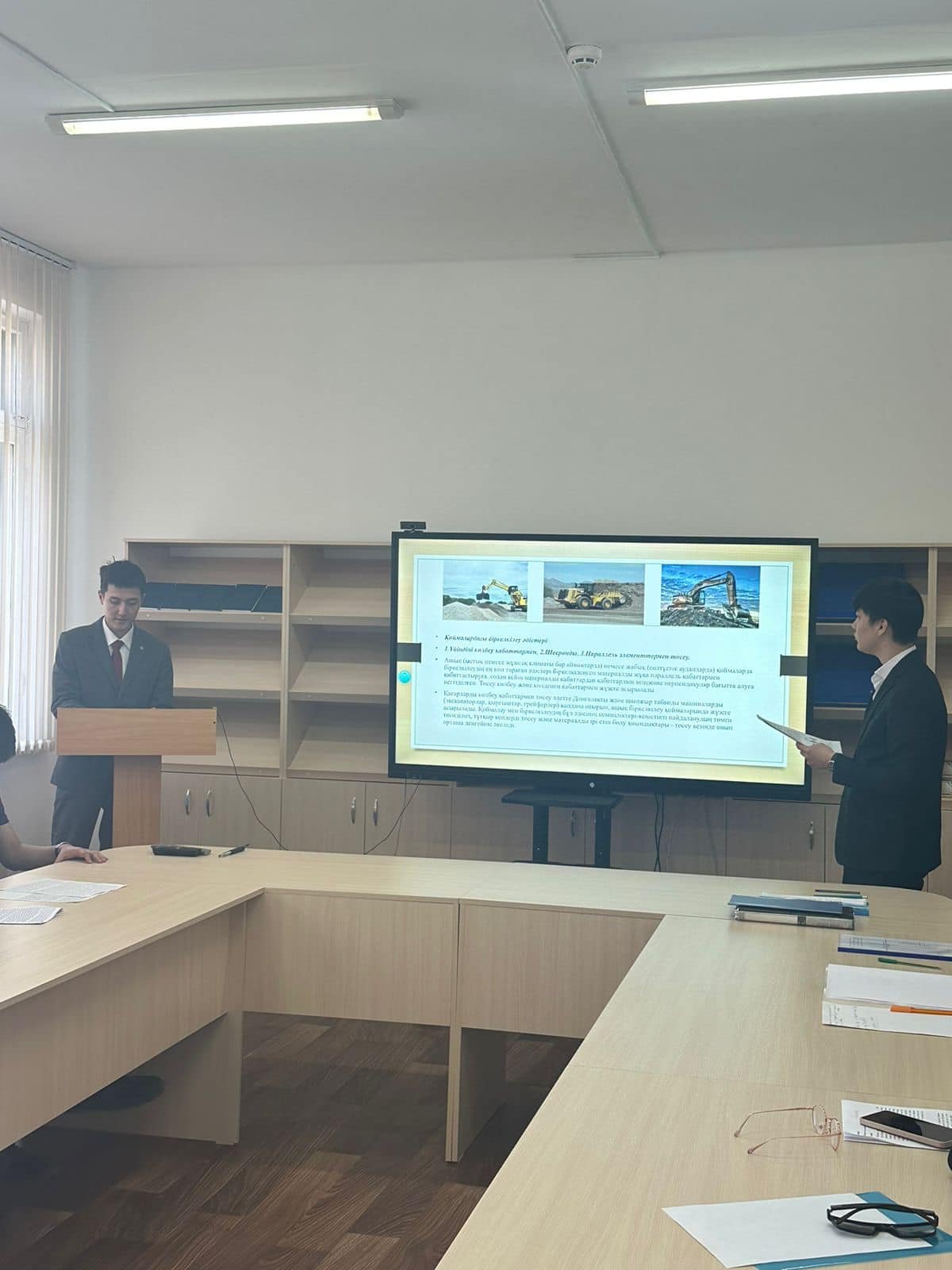 Жоспарланған іс-шара шеңберінде «Өнеркәсіптегі жаңа технологиялар» ғылыми-техникалық зертханасы және «Тау-кен ісі, құрылыс және экология» кафедрасының «Тау-кен ісі», «Тау-кен ісіндегі 3D инженер» білім беру бағдарламасының 2, 3, 4 курс студенттері және «Кенші» студенттік ғылыми үйірмесінің мүшелері арасында студенттердің ғылыми-зерттеу жұмыстарының конкурсы өткізді. Титан-цирконий кендерінің Обухов кен орнының тау-кен инженерлері Хамитов Батырбек пен Серікбаев Ербұлан шақырылды. Қазылар алқасының құрамына шақырылған мамандар мен кафедраның жетекші оқытушылары Муканова А. К., Байкенов Н.А., Утегенов Е. А. кірді.Студенттердің ғылыми жұмыстары Обухов кен орнының ғылыми-техникалық міндеттерін шешуге бағытталған. Жалпы, студенттердің ғылыми жұмыстары өте қызықты және іс жүзінде маңызды. Студенттер өздерінің болашақ дипломдық жобаларын орындау үшін жақсы негізге ие. Сонымен қатар, студенттер мамандардың өте құнды ұсыныстарын алды.