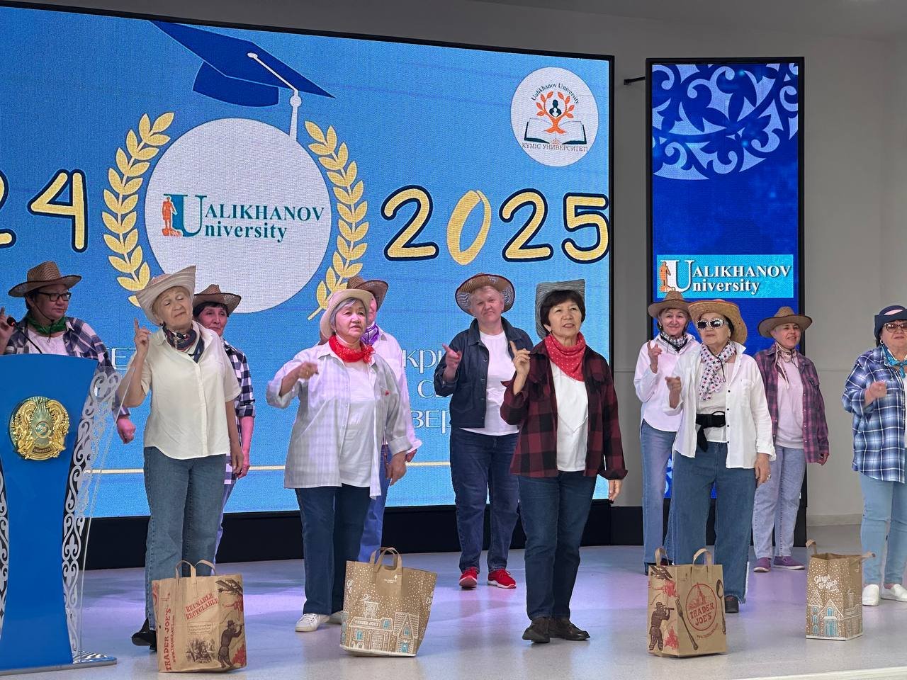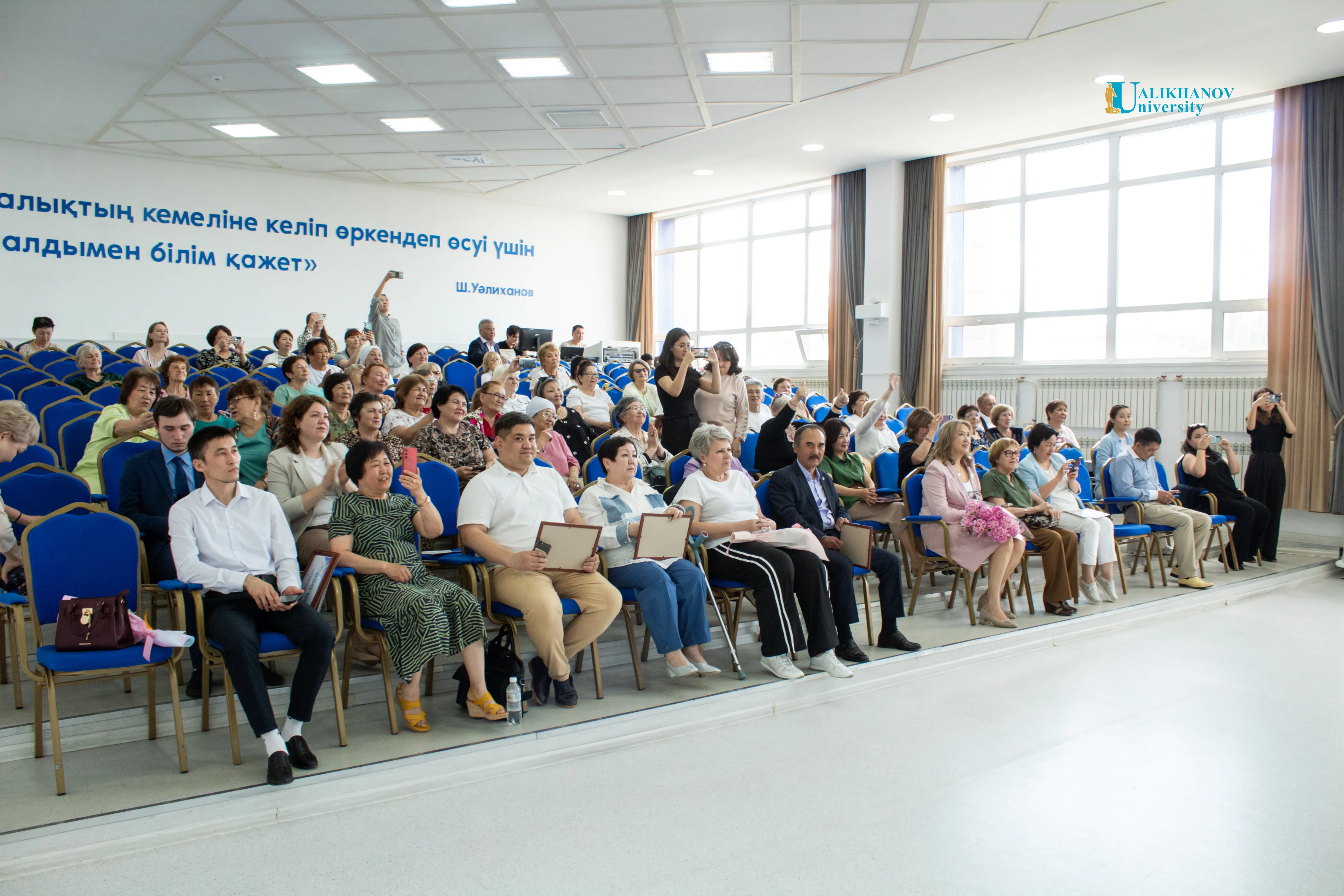 Ualikhanov University Күміс университетіндегі кезекті, төртінші оқу жылы сертификаттар, алғыс хаттар және курс есептерімен, салтанатты іс-шарамен аяқталды. Ғылыми жұмыс және өңірмен өзара іс-қимыл жөніндегі проректор Айгүл Жакупова түлектерді оқу нәтижелерімен және бүкіл оқу кезеңінде белсенді қызметімен құттықтады.