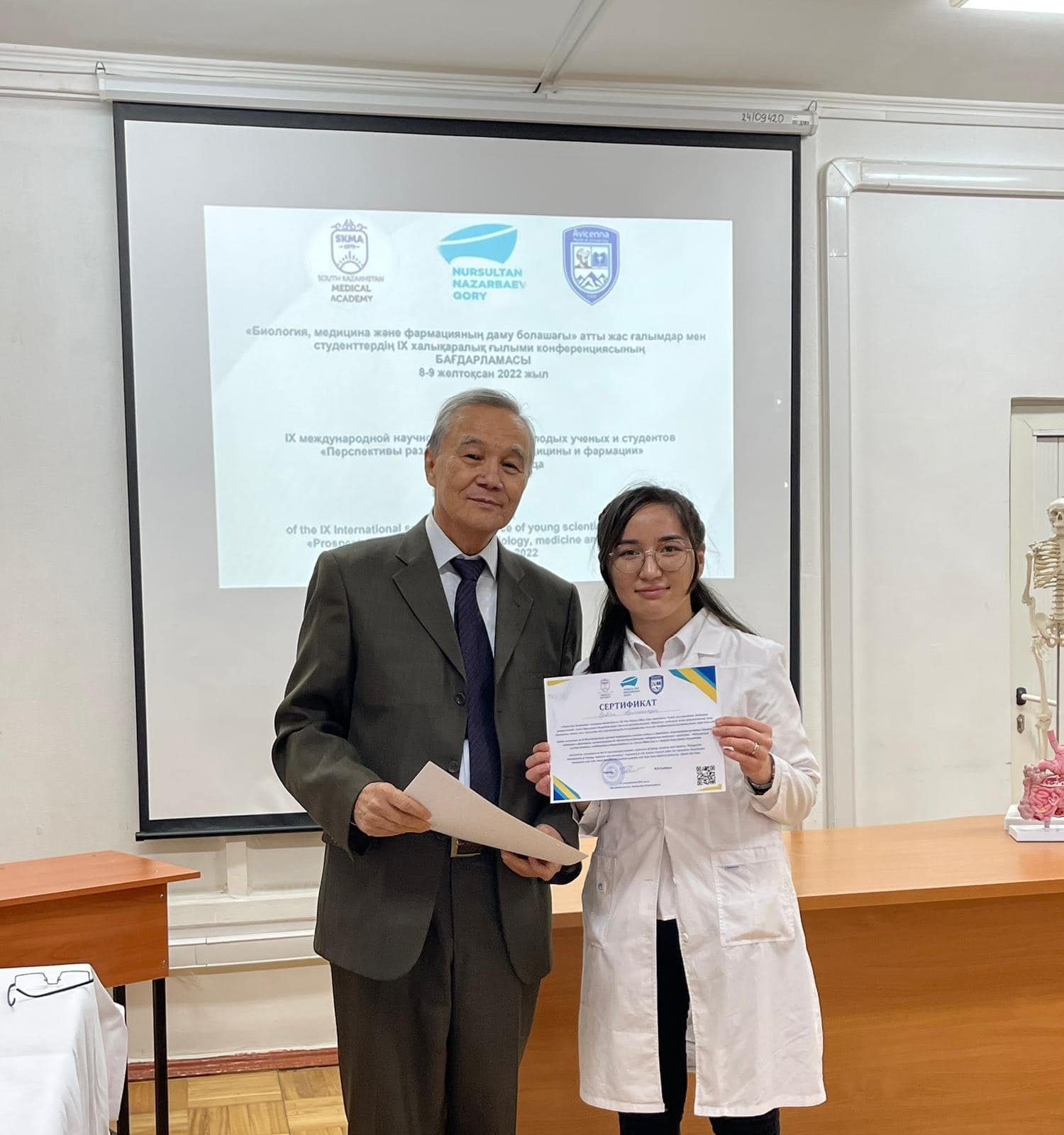 Высшая школа медицины НАО «Кокшетауского университета имени Ш. Уалиханова» поздравляет своих воспитанниц – студентов четвертого года обучения, будущих носителей доблестного имя врача, Ербол Армангүл и Мұсылман Аружан со значимым успехом на IX Международной научной конференции молодых ученых и студентов «Перспективы развития биологии, медицины и фармации» состоявшейся 8-9 декабря 2022 года, организованного Советом по науке при фонде Нурсултана Назарбаева и Южно-Казахстанской медицинской академией совместно с Таджикским государственным медицинским университетом им. Абуали ибни Сино. В секции «Инновации в медицине: от теории к практике» представитель белого халата от нашего родного альма-матер Ербол Армангүл признана лучшим спикером и обладательницой гран-при. В целом научное событие вызвало масшатбный интерес среди молодого прогрессивного соббщества, так около 300 трудов были представлены для рассмотрения в том числе и из стран зарубежья – Казахстана, России, Ирана, Чехии, Таджикистана, Кыргызстана, Узбекистана.