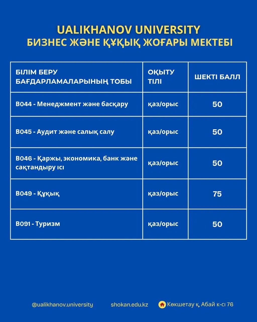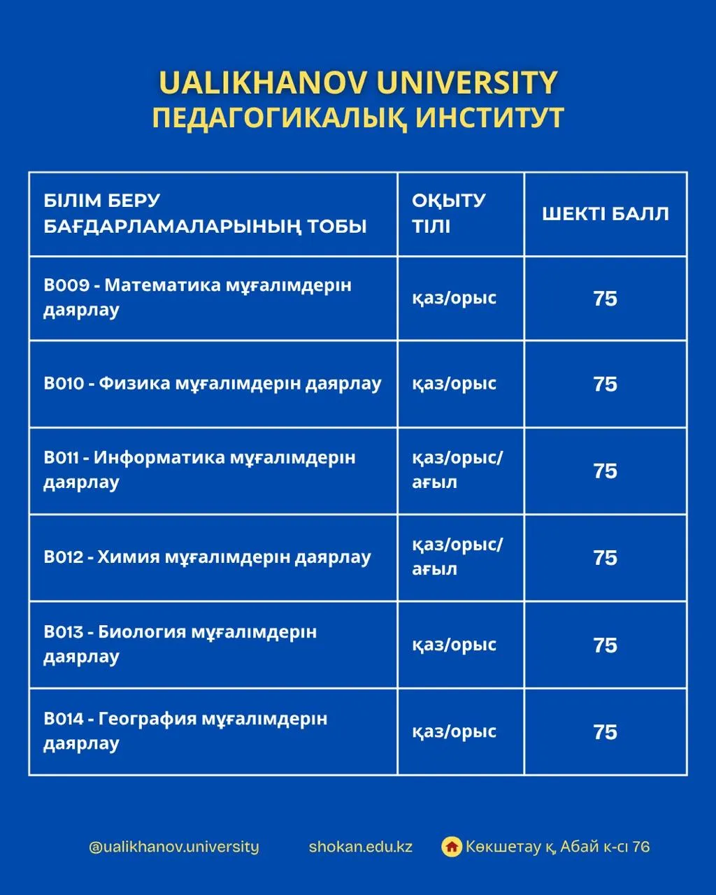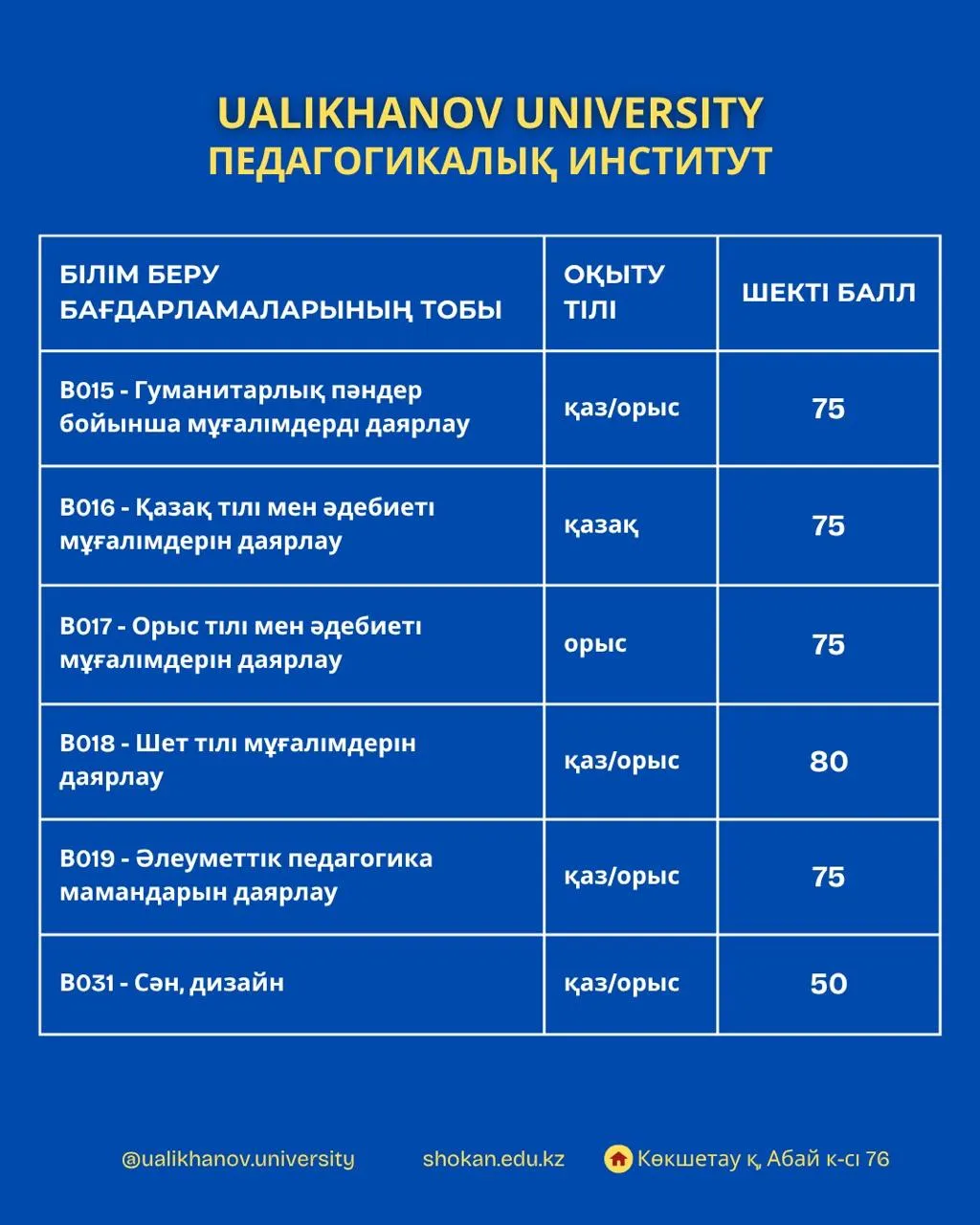 Ш. Уәлиханов атындағы Көкшетау университетінің білім беру бағдарламалары бойынша оқу ақысы