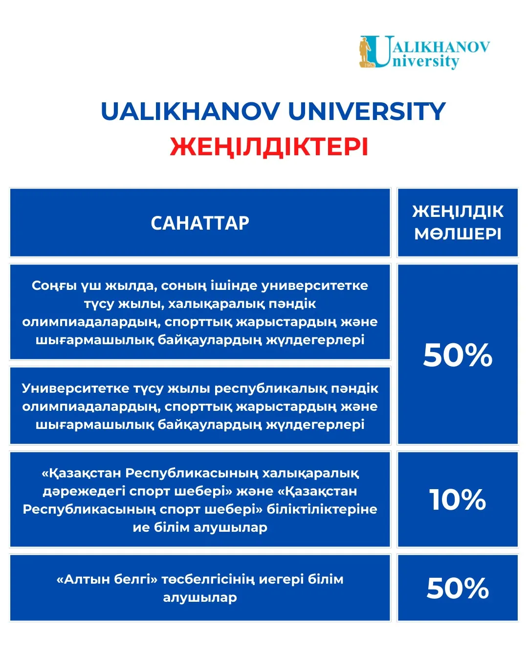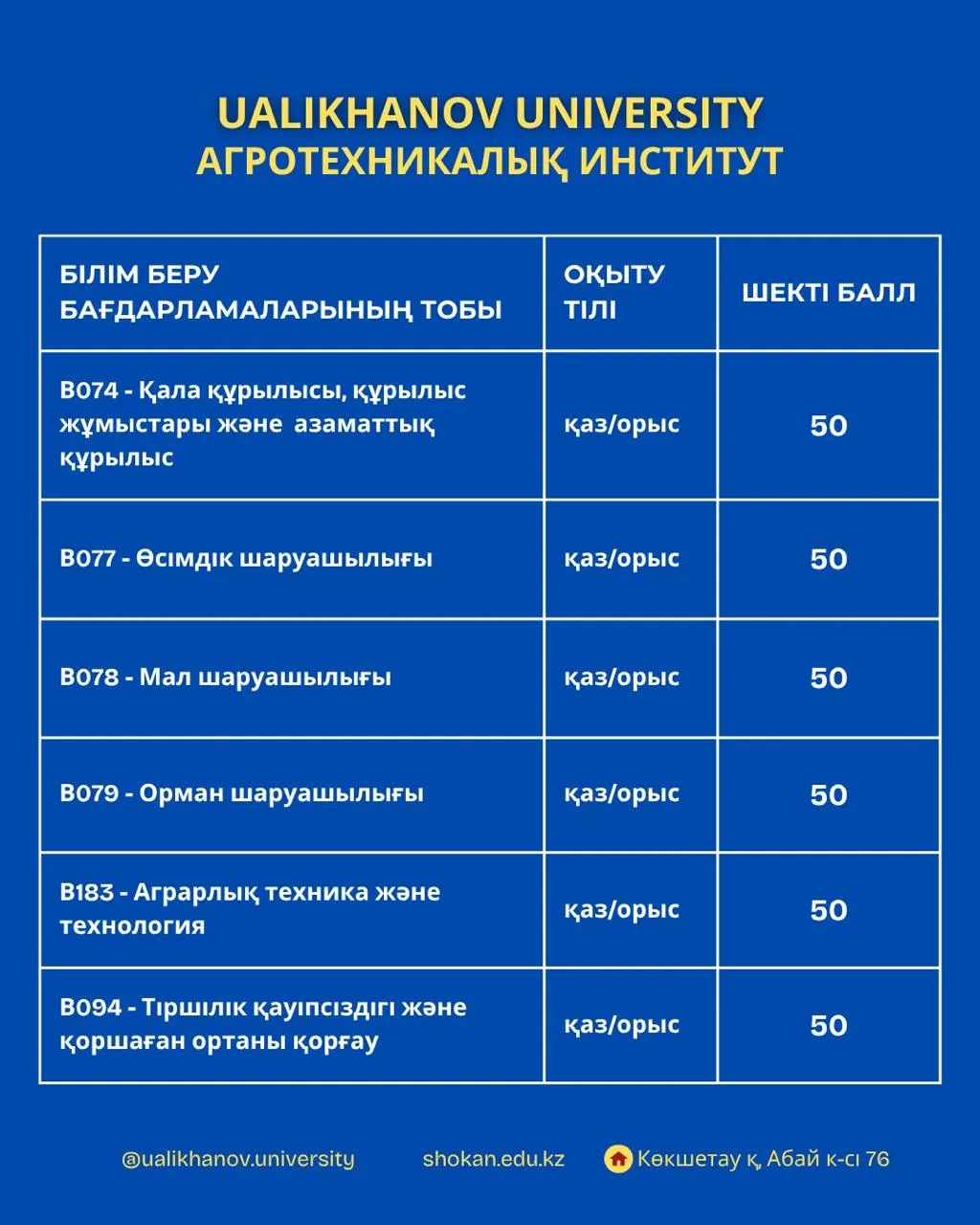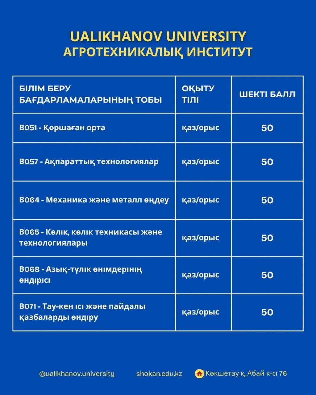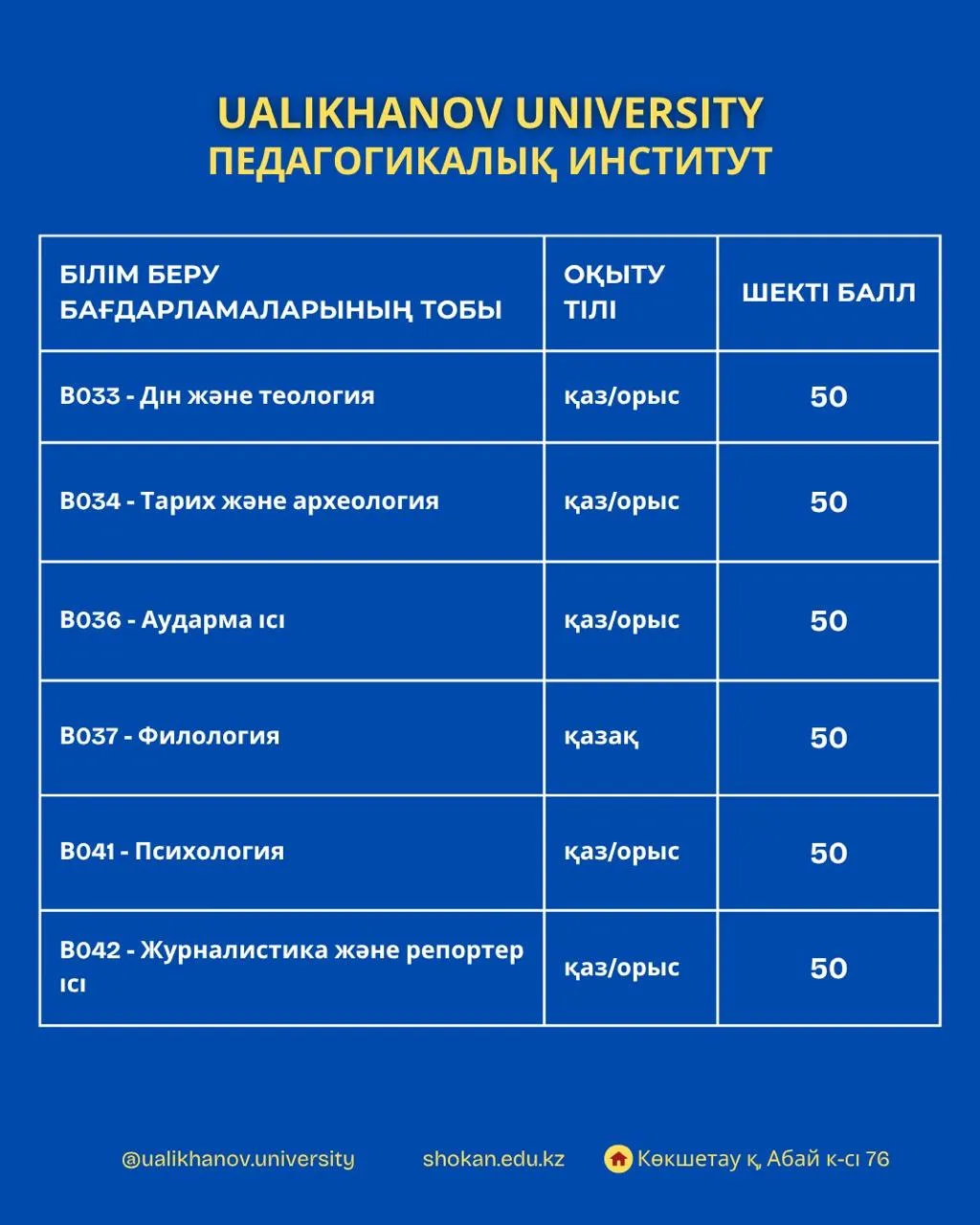 Ш. Уәлиханов атындағы Көкшетау университетінің білім беру бағдарламалары бойынша оқу ақысы