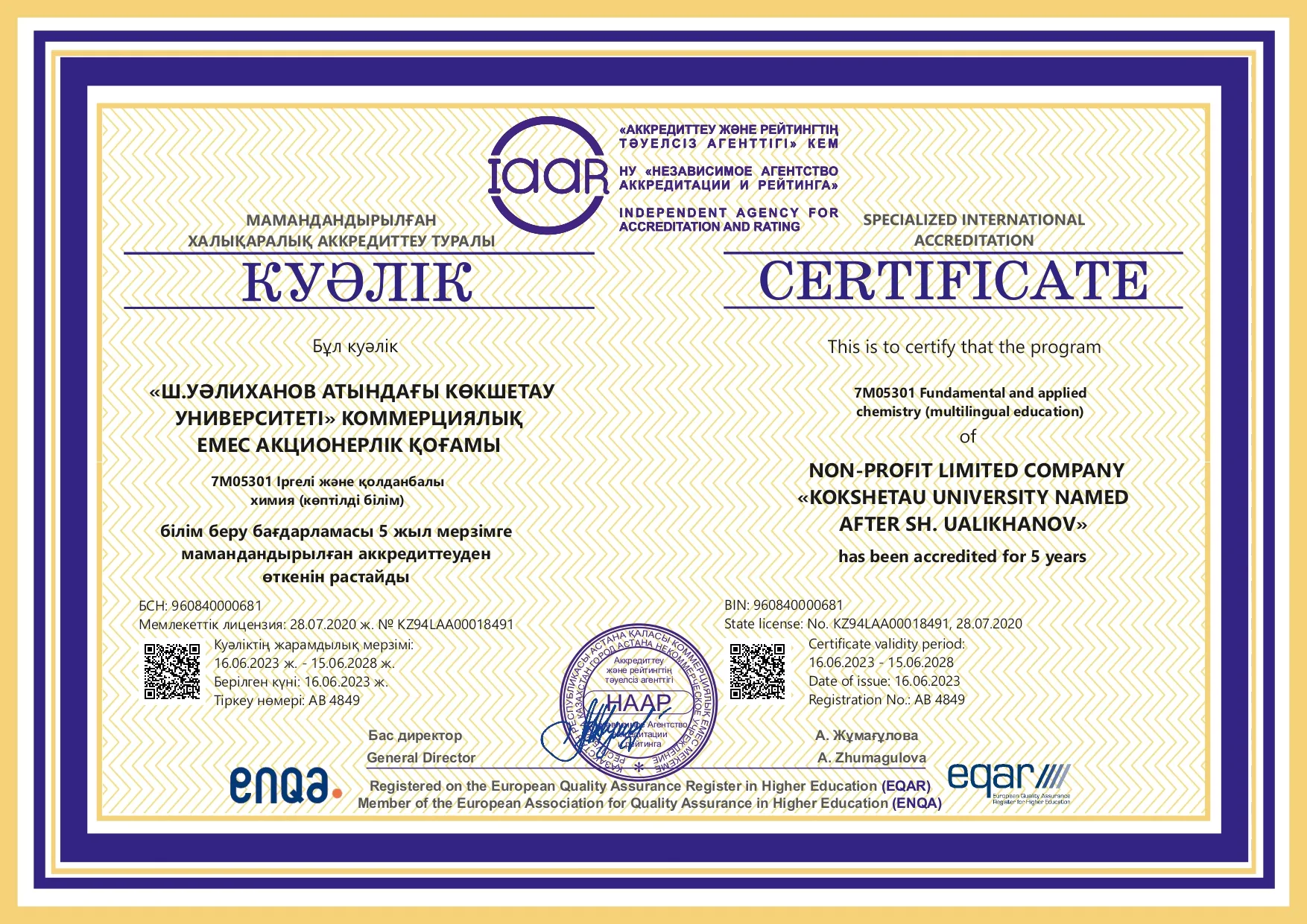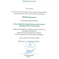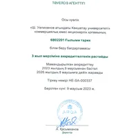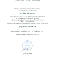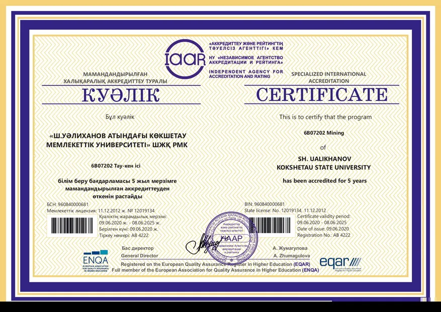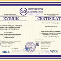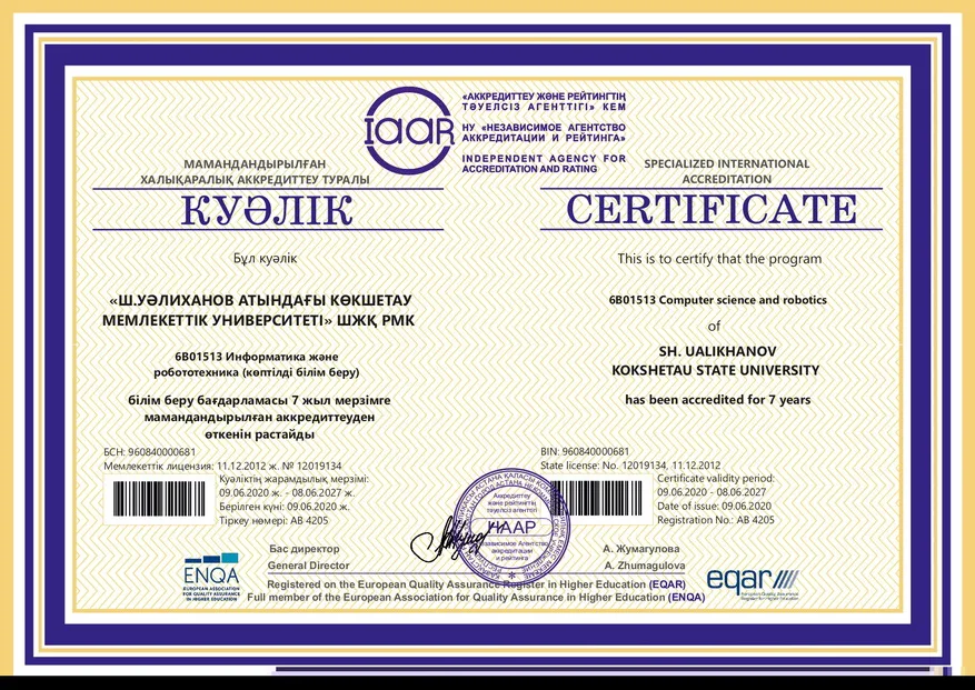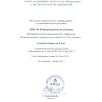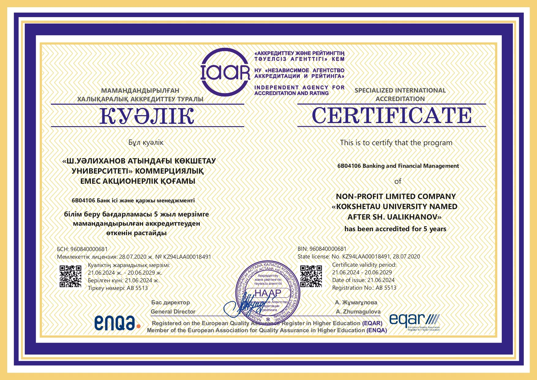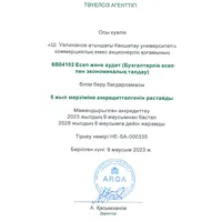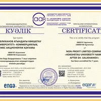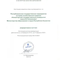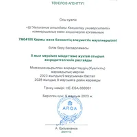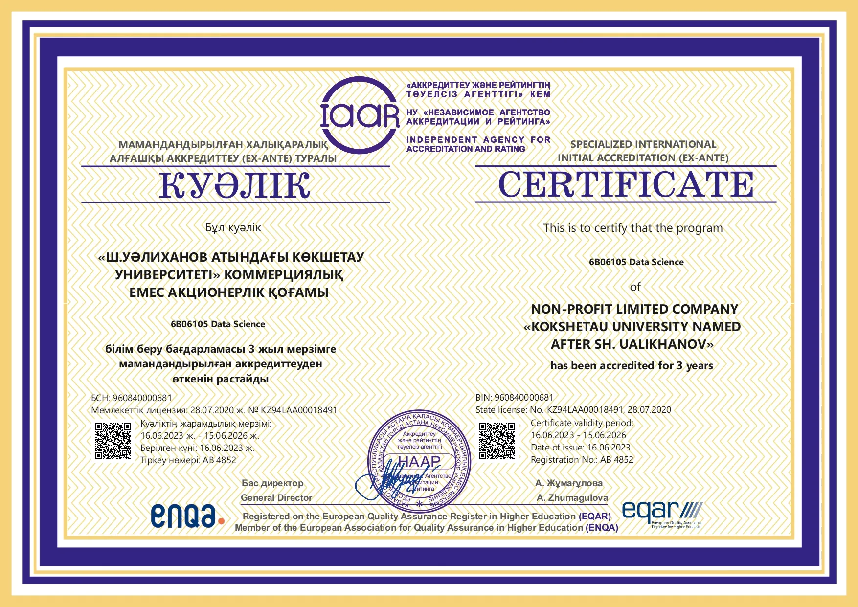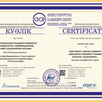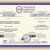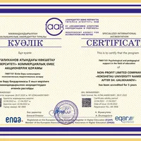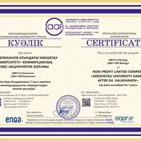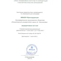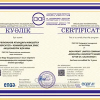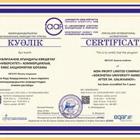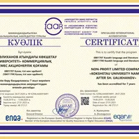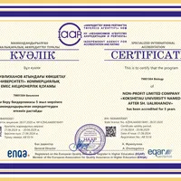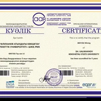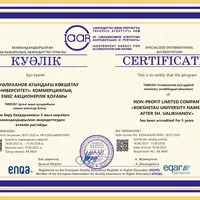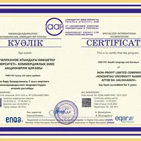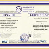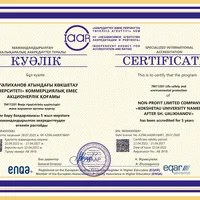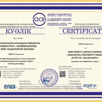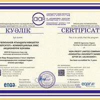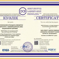 Всего аккредитовано 97% образовательных программ университета в Независимом агентстве аккредитации и рейтинга НААР/IAAR, Независимом агентстве по аккредитации и экспертизе качества образования ARQA, Казахстанской Ассоциации элитного образования KAZSEE.