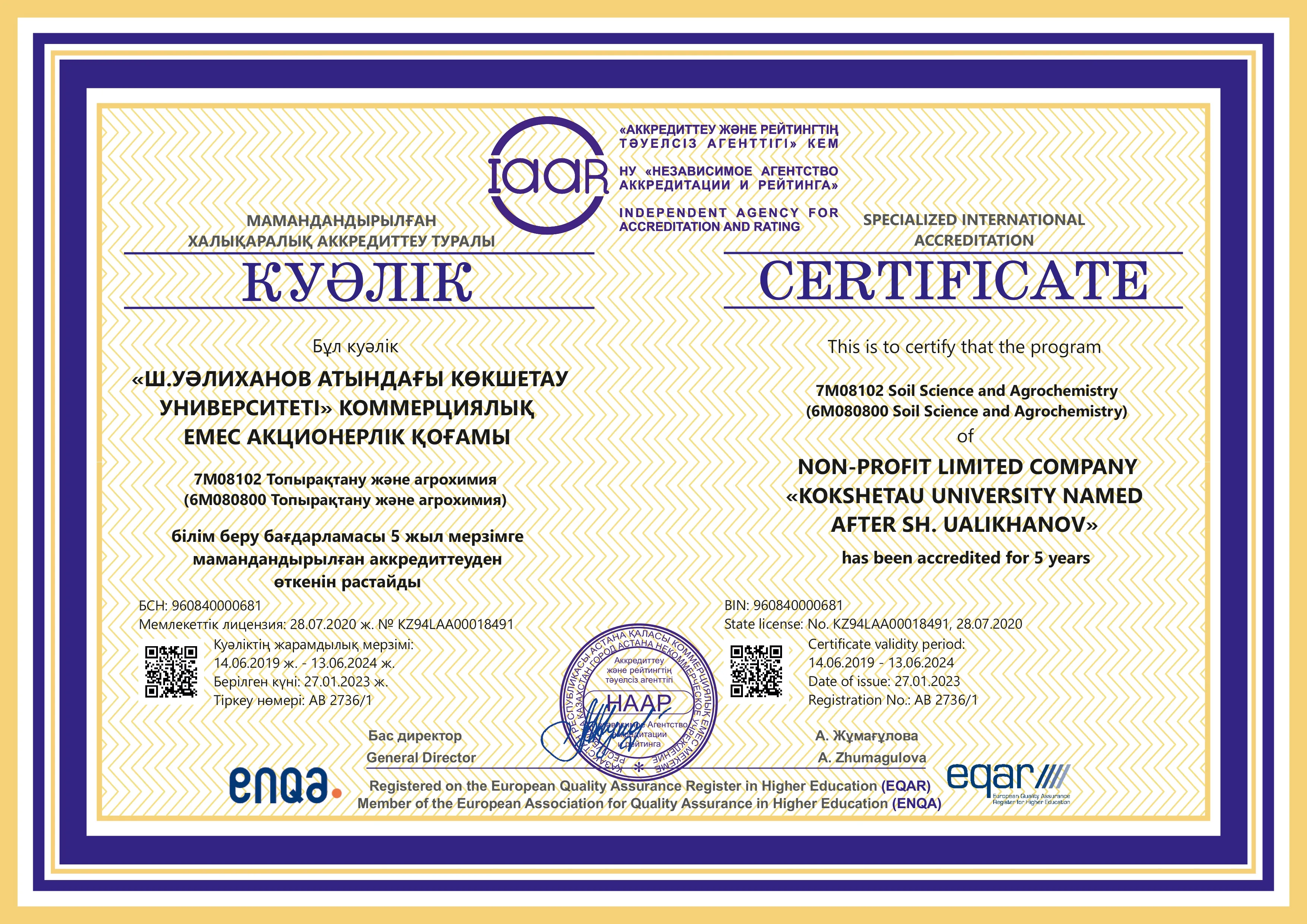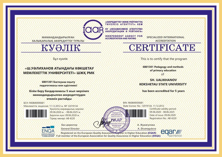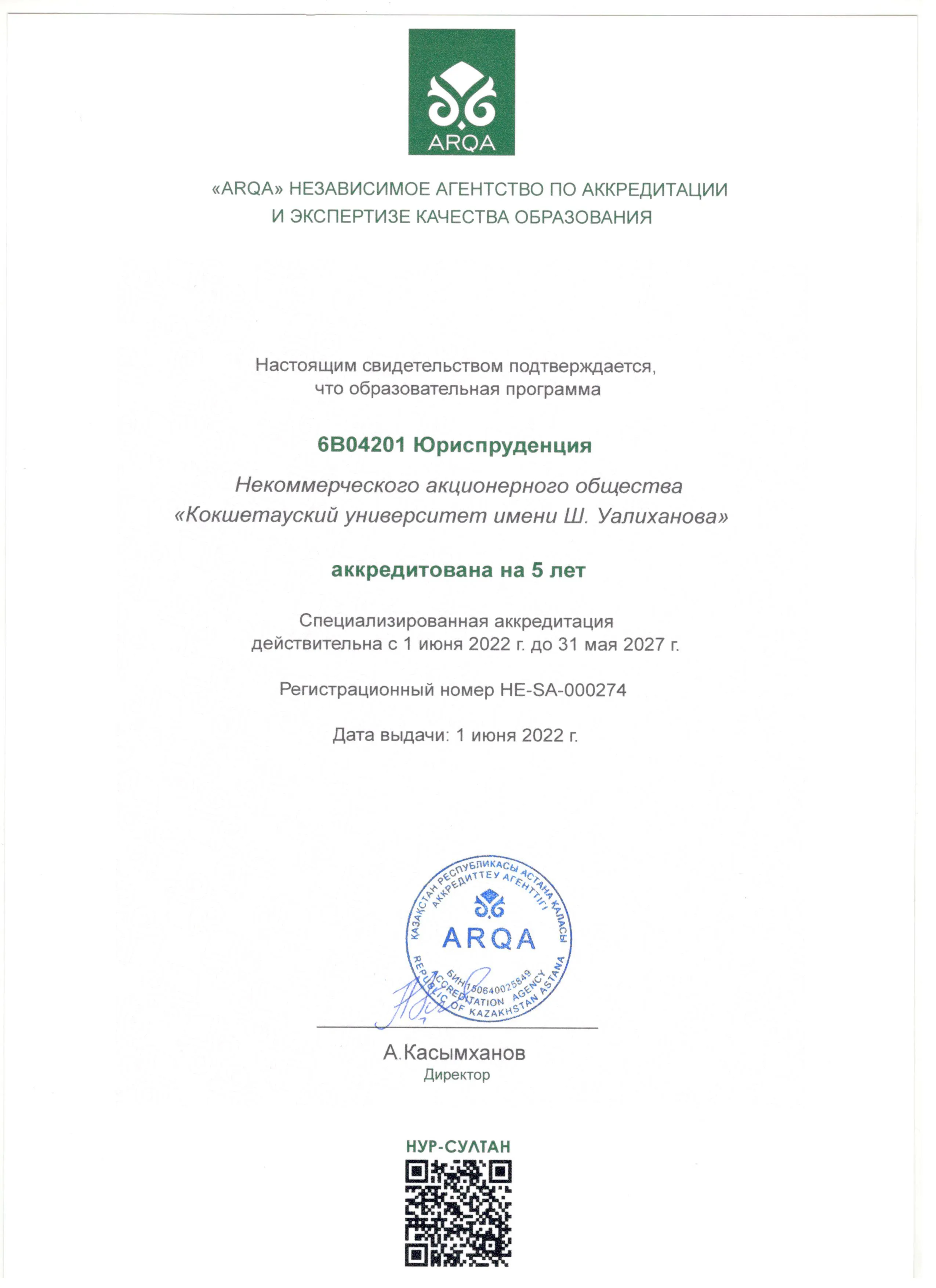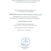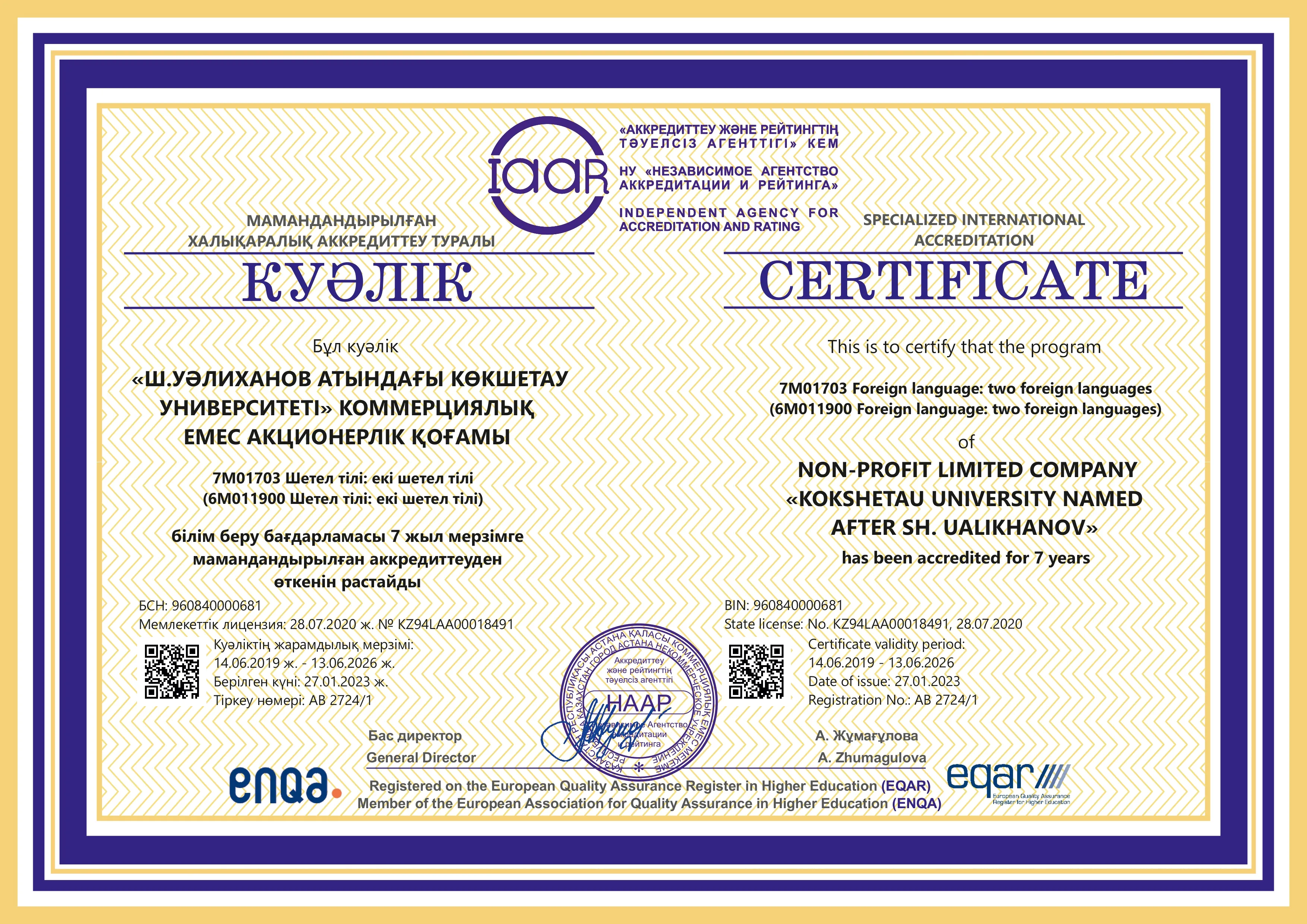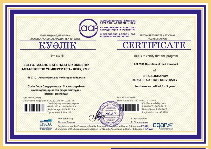 Всего аккредитовано 97% образовательных программ университета в Независимом агентстве аккредитации и рейтинга НААР/IAAR, Независимом агентстве по аккредитации и экспертизе качества образования ARQA, Казахстанской Ассоциации элитного образования KAZSEE.