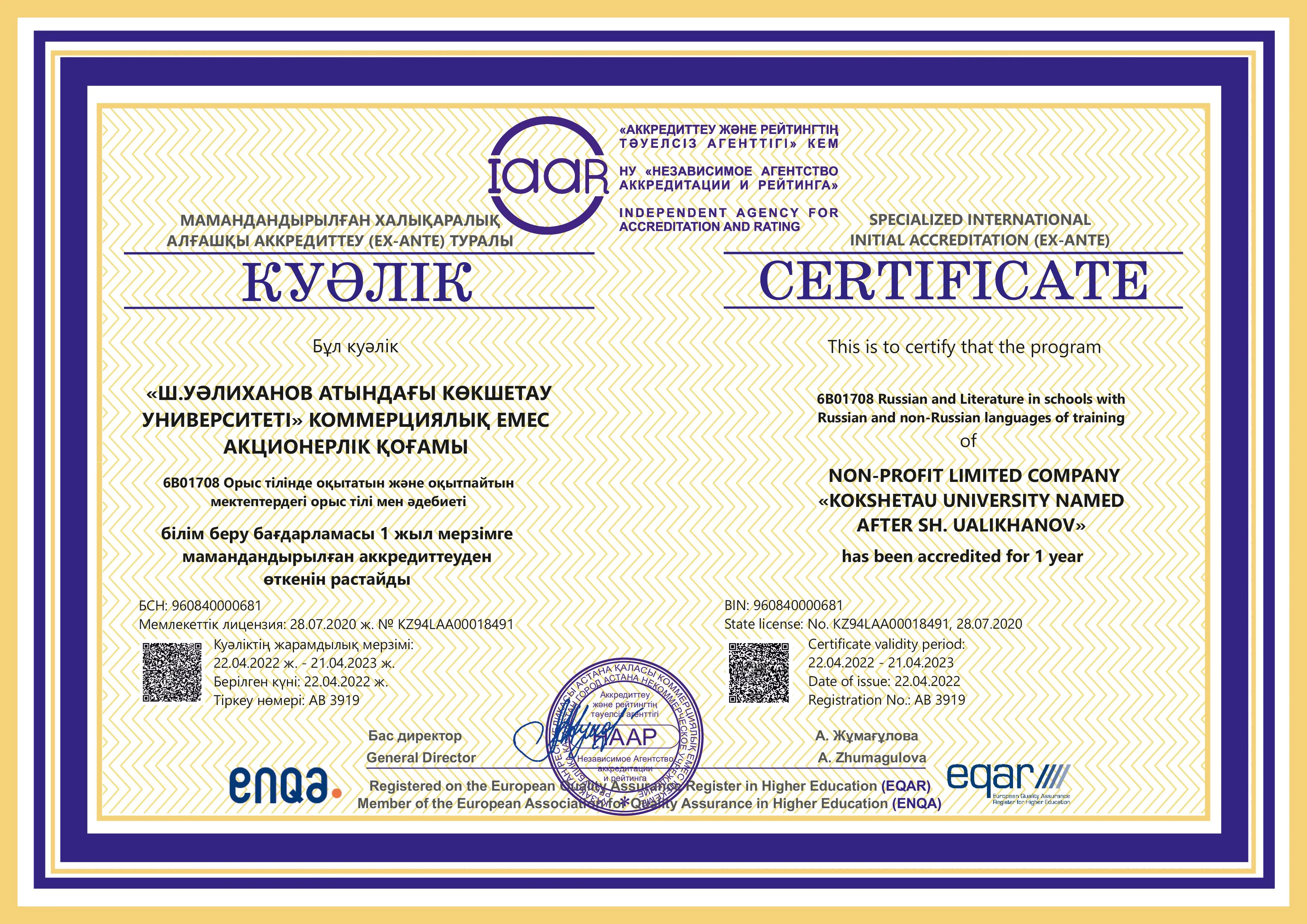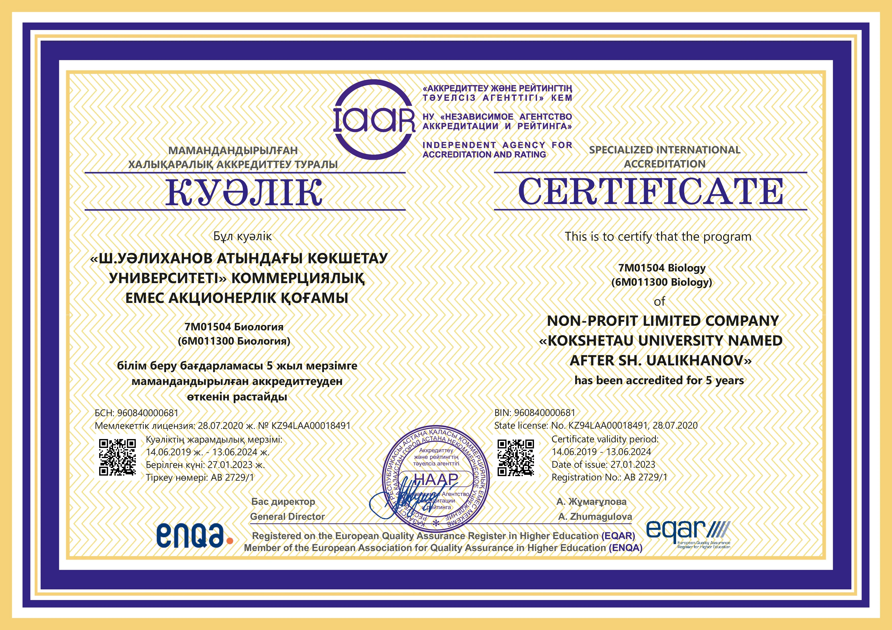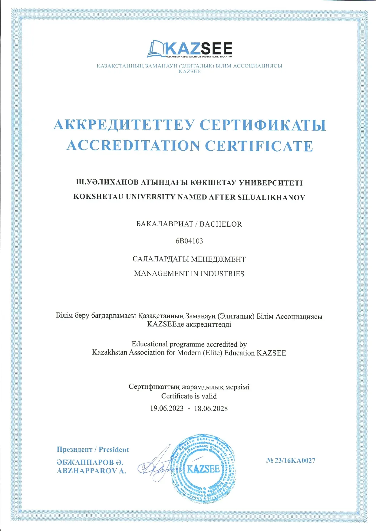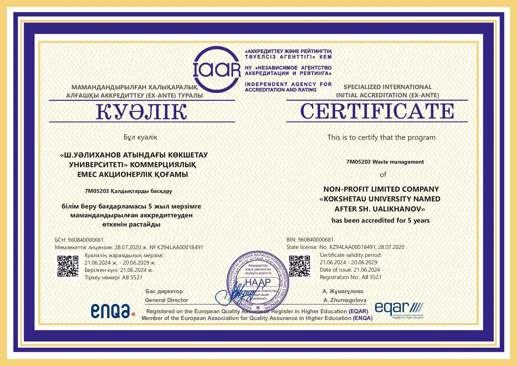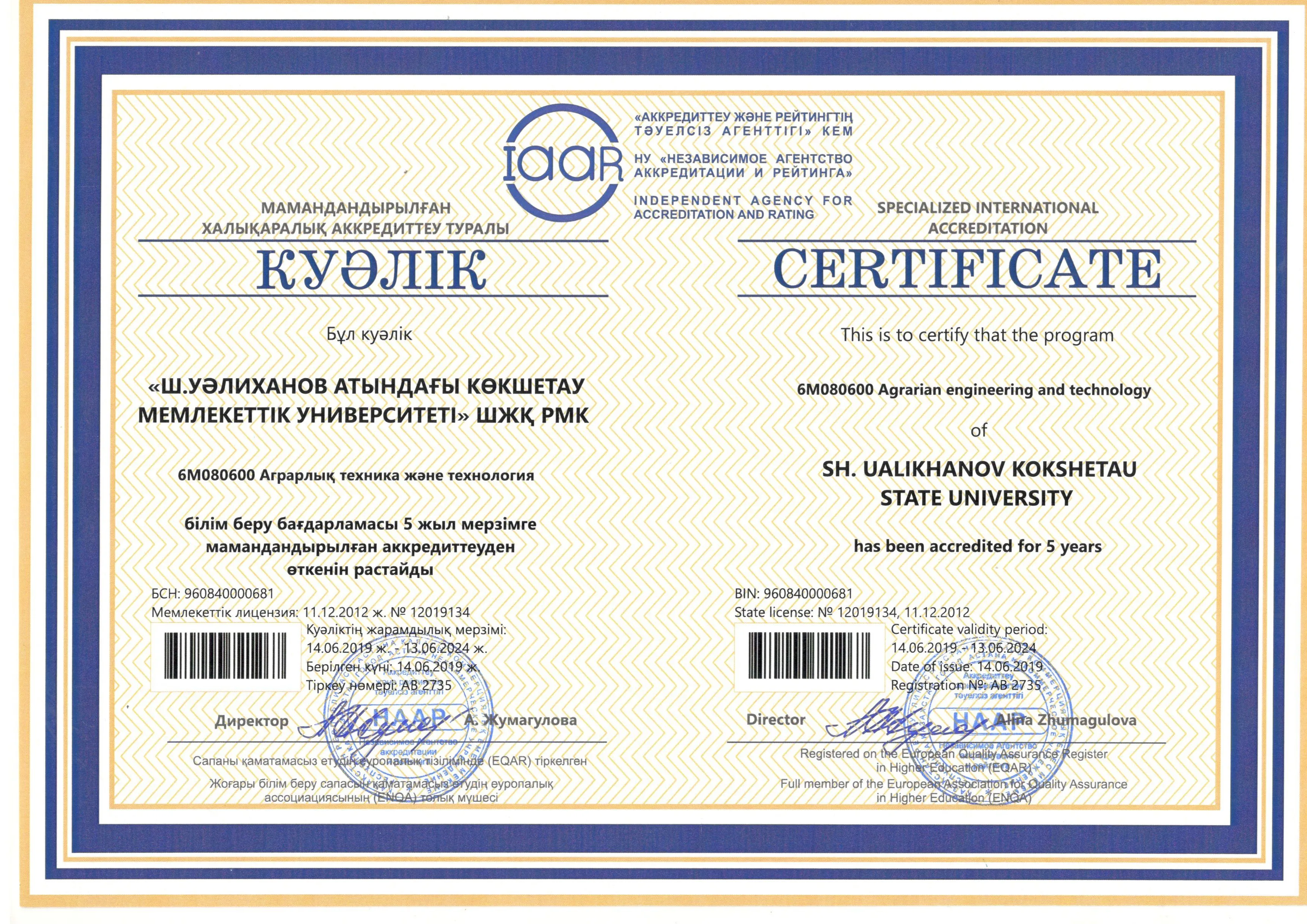 Всего аккредитовано 97% образовательных программ университета в Независимом агентстве аккредитации и рейтинга НААР/IAAR, Независимом агентстве по аккредитации и экспертизе качества образования ARQA, Казахстанской Ассоциации элитного образования KAZSEE.
