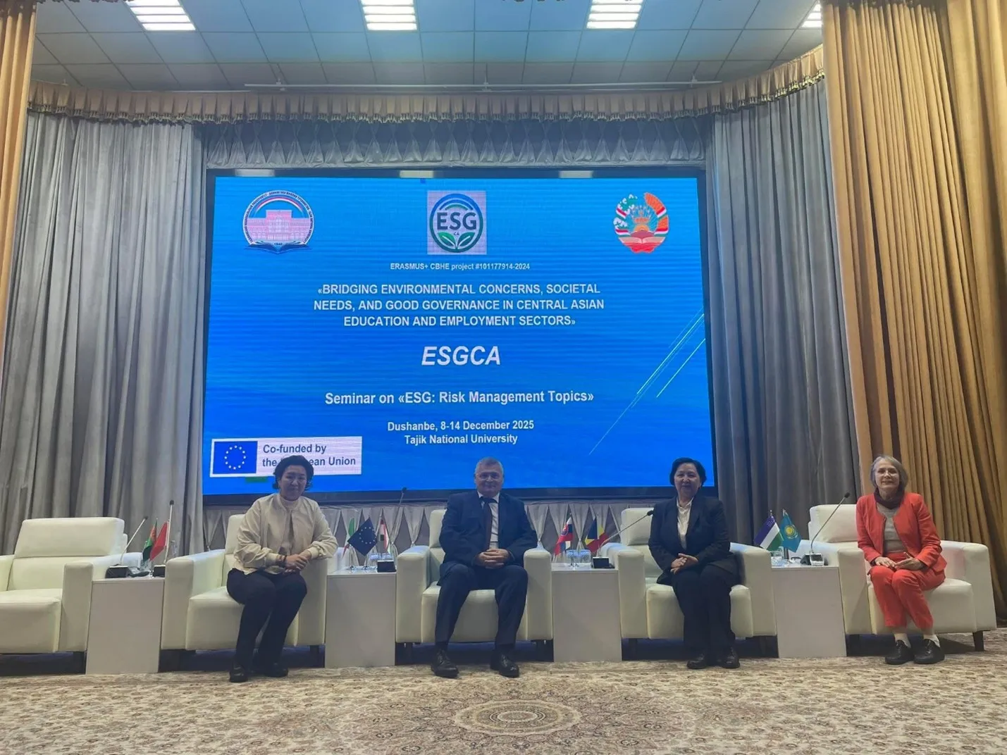 8 декабря 2025 года на базе Таджикского национального университета начался международный семинар «ESG: Risk Management», проводимый в рамках проекта ESGCA — “Bridging Environmental Concerns, Societal Needs, and Good Governance in Central Asian Education and Employment Sectors”.