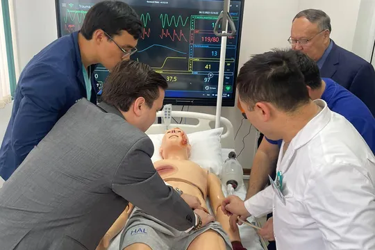 4-5 декабря 2023г. в Симуляционном центре Высшей школы медицины для преподавателей и сотрудников практического здравоохранения прошел семинар "Обучение на компьютеризированном манекене травмы и тренажере лапароскопии" с Николай Крог-Йенсеном, специалистом компании Gaumard Scientifiс. Обучающиеся работали с манекеном Травма/ Скорая помощь мобильный дистанционный, манекен для отработки навыков оказания неотложной помощи при работе в команде и диагностики, с использованием реального оборудования реанимации. Симулятор дает возможность отрабатывать навыки неотложной помощи при различных травмах, спасения при пожаре, экстренного полевого ухода, извлечения из завалов, транспортировки пациентов, массовых несчастных случаев, дезактивации и т.д.