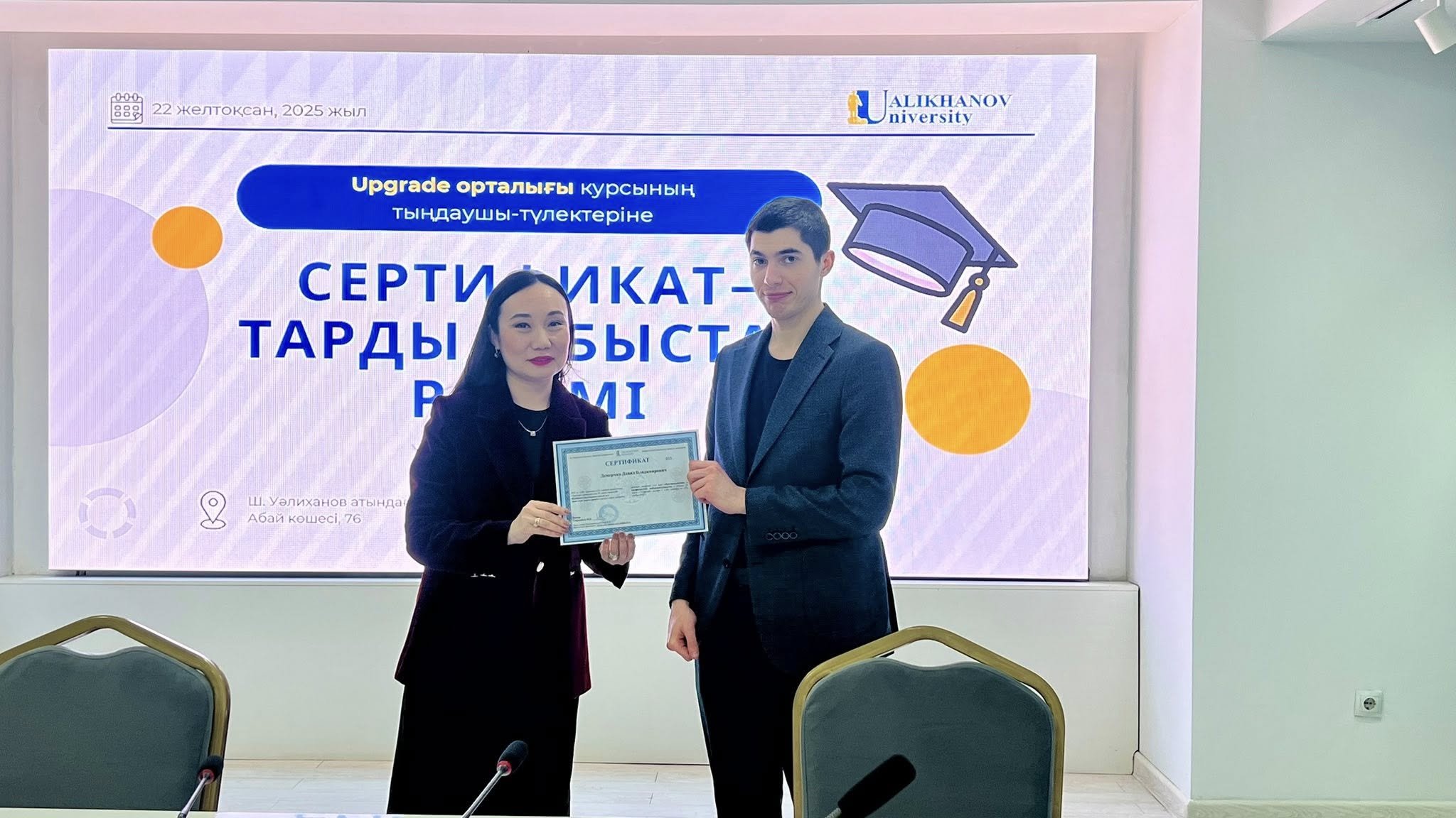 В торжественной обстановке сертификаты вручила Член Правления по академическим вопросам НАО «Кокшетауский университет им. Ш. Уалиханова» Рыспаева Динара Сарсембаевна, поздравив слушателей с успешным завершением курсов и пожелав им дальнейших профессиональных успехов.